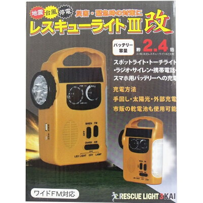 【緊急用・非常用】ラジオライト 手回し発電 太陽光充電 AM/FMラジオ LED懐中電灯・ランタン付き スマートフォン・携帯電話充電可能 災害対策 レスキューライト3 改 ※次回11月中旬入荷予定